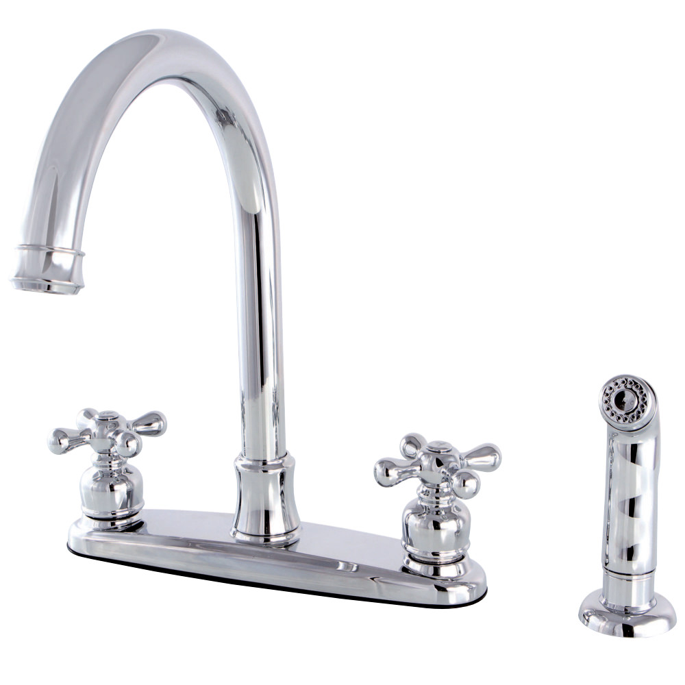 Kingston Brass FB7791AXSP 8 in. Victorian Centerset Kitchen Faucet with Metal Cross Handle, Chrome