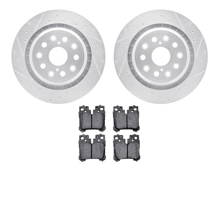 Dynamic Friction Company Rear Brake Rotors Drilled and Slotted Silver with 5000 Advanced Brake Pads - 7502-75116