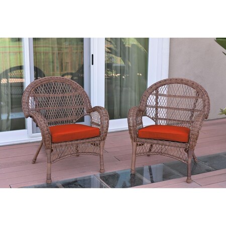 W00210-C-2-FS018 Santa Maria Honey Wicker Chair with Red Orange Cushion