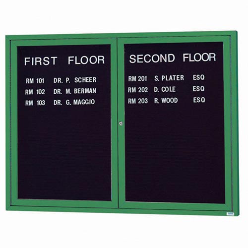 Aarco ADC4860IG 48" x 60" Enclosed Hinged Locking 2 Door Powder Coated Green Aluminum Indoor Lighted Message Center with Black Letter Board
