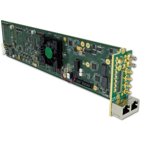The Cobalt Digital <strong>RM20-9904-D-HDBNC</strong> is a single wide 20-Slot Frame Rear I/O Module with (6) 12G/6G/3G/HD/SD/SD-SDI Inputs, (8) 12G/6G/3G/HD/SD/SD-SDI Processed Outputs, (4) AES Outputs, GPIO/COMM (HD-15 connector), HDMI 2.0 Output (type A standard connector) and 100/1000 BaseT Ethernet Port (All coaxial connectors HD-BNC.)</p><p>This module mates with the Cobalt 9904-UDX-4K 12G/6G/3G/HD/SD UHD Up/Down/Cross Converter/Frame Sync/Embed/De-Embed Audio Processor card and is Cobalt's next generation of advanced scaler/frame synchronizers for the openGear platform. The 9904-UDX-4K upconverts 12G/6G/3G/HD/SD to either UHD1 3840x2160 Square DIvision Multiplex (SDM) or Two-Sample Interleave (2SI) quad 3G-SDI based formats, or can output ST 2082 12G-SDI for single-wire 4K transport. With both 12G-SDI and quad 3G-SDI inputs, the 9904-UDX-4K can downconvert 12G and quad UHD. The 9904-UDX-4K provides an HDMI 2.0 output for economical 4K video monitoring. The 9904-UDX-4K offers numerous options, including SDR-to-HDR conversion and color correction.</p><p><B>Please Note!</B> This is the Rear Module only! Card is sold seperately!</p>