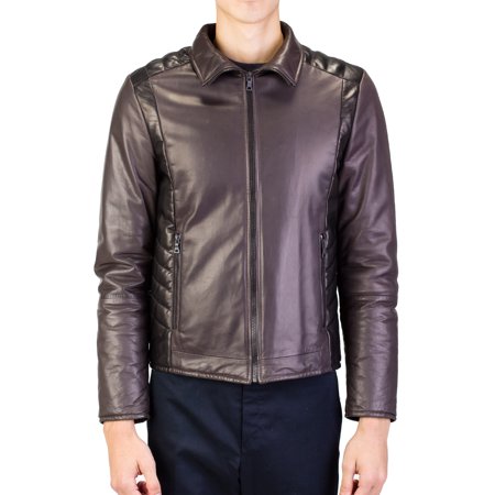 Prada Men's Motorcycle Soft Quilted Leather Zip Jacket Coat Dark Grey Black