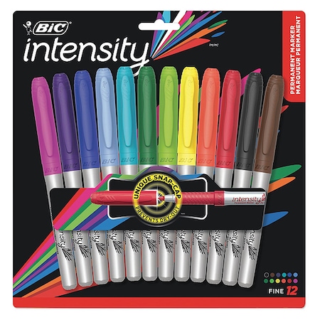 Bright, fun and fashionable—fine-tip, smooth-flowing Mark-It markers provide precise control. Color-matched, textured rubber grip delivers ergonomic comfort. Alcohol-based, nontoxic ink lays down vivid, quick-drying, water-resistant lines on glass, metal, plastic, paper, photos and more. Marker Type: Permanent; Assortment: Blue Skies Blue;Deep Sea Blue;Fandango Pink;Forest Green;Hot Aqua;Key Lime;Playful Purple;Rambunctious Red;Sunset Orange;Tuxedo Black;Woodsy Brown;Yellow Blaze; Color(s): Assorted. Part Numbers:BIC-GPMAP12ASST BIC MARK-IT PERMANENT MARKERS, FINE POINT, ASSORTED, 12SET UPC: 070330325920