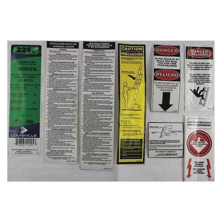 Label Kit, For Use With Grainger Item Number 36Y352, 36Y353, 36Y354, 36Y355, 36Y356, 36Y357, For Use With Mfr. Model Number AE4110, AE4112, AE4114, AE4116, AE4118, AE4120, Fits Brand Louisville Ladder