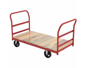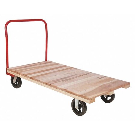 Platform Truck - Wood Deck With Steel Fram: 24“ x 48“ , 2 Crossbar Handles, and 8“ Mold-On Rubber Casters• Capacity Wt.: 2000 lbs.• Safely transport product, minimize lifting/carrying• Heavy-duty platform trucks with kilndried, tongue and groove hardwood decks• Choose from multiple options in deck finishes, handles, rails, casters, running gear patterns, bumpers and wheel locks.• Decks are 4/4 (7/8? thick)• Shipped completely assembled and ready to use• Casters are bolted on for easy replacementDeck style: Series 2 - Wood Deck with Steel Fram• 2“ x 2“ x 1/8“ welded steel angle frame keeps cart square (On 36“ x 72“ deck, 2“ x 2“ x 3/16“ )• Heavy-duty steel frame for additional deck support• The wood deck is reinforced with longitudinal stiffeners for maximum capacity.• Two swivel, two rigid casters Product photo may not exactly match the product offered for sale. Please refer to the product description.