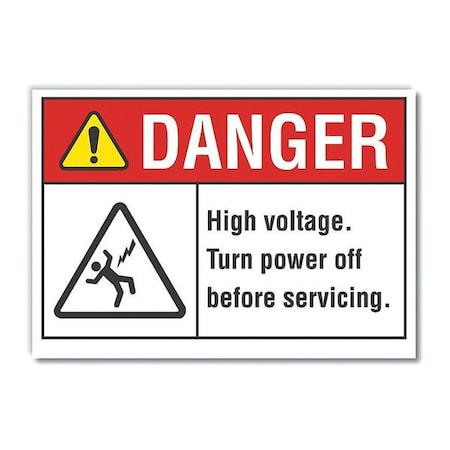 High Voltage Danger Reflective Label, Horizontal Rectangle, Number of Printed Sides 1, English, Sign Format ANSI/OSHA Format, Sign Legend High Voltage. Turn Power Off Before Servicing., Sign Legend Background Color White, Sign Legend Style Symbol and Text