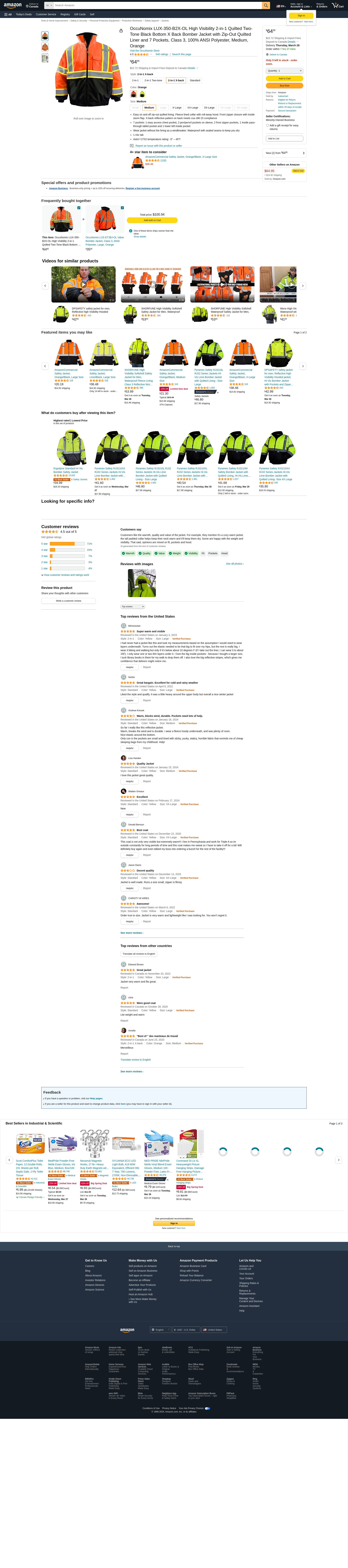 | Feature | Occunomix LUX-350-B2X Black Bottom 2-in-1 X Back Bomber Jacket 2X Orange |
