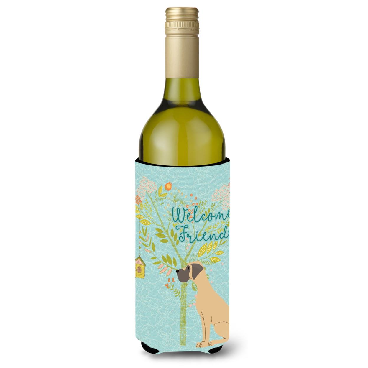 Carolines Treasures BB7588LITERK Welcome Friends Fawn Great Dane Natural Ears Wine Bottle Beverge Insulator Hugger
