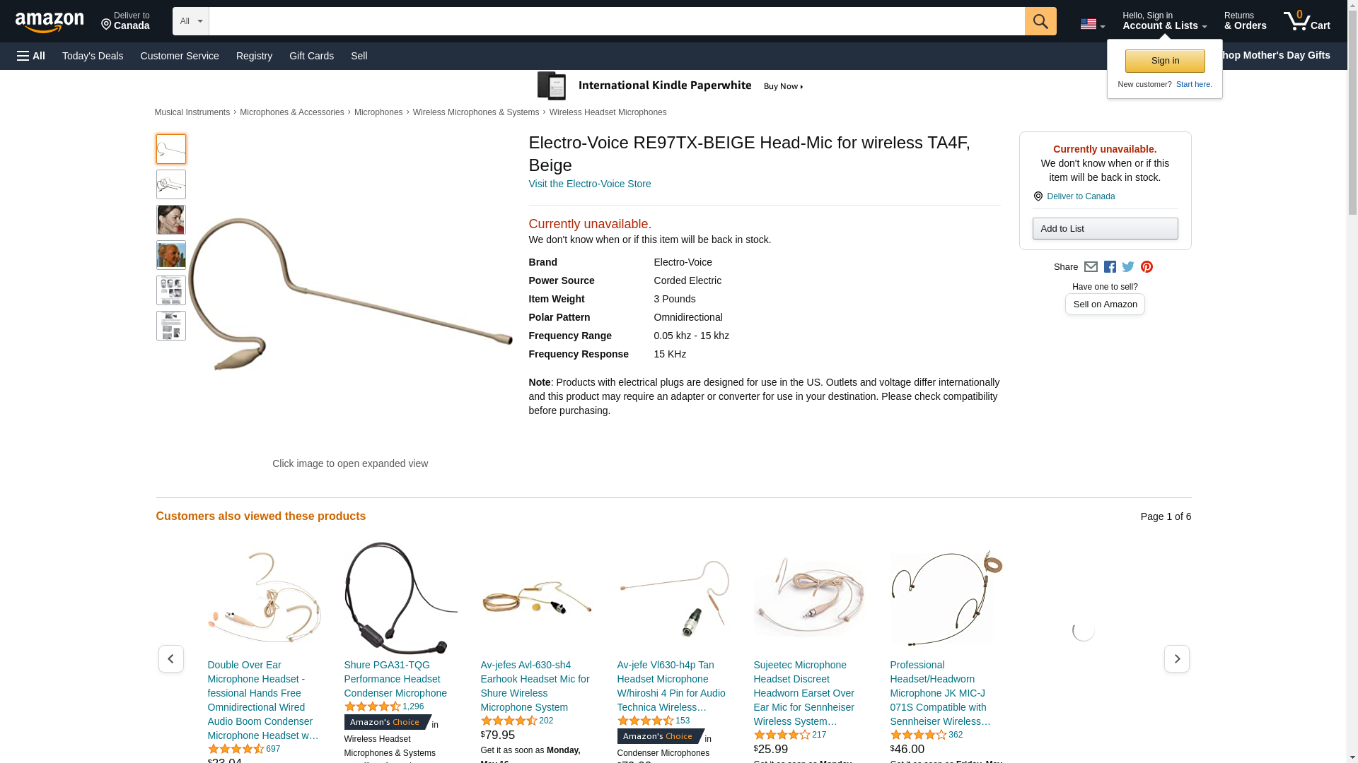 The RE97 is an ultra-low profile, head-worn omni-directional microphone, wired for use with EV and Telex bodypack transmitters via a 4-ft cable terminated in a TA4F connector. Available in beige, tan or black, the RE97 is specially designed for spoken word, house of worship, corporate A/V, theatrical and fixed install applications - wherever customers require a high performance, lightweight microphone with a very low visual profile. The RE97 is easily reformed for left or right ear usage. Package includes a foam pop filter, cable/clothing clip and gig bag. Specifications Frequency Response: 50Hz-15kHz Sensitivity: 2.2mV Max SPL: 135 dB