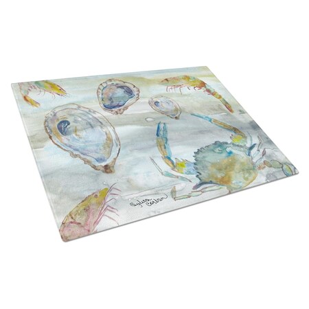 Caroline's Treasures SC2010LCB Crab, Shrimp and Oyster Watercolor Glass Cutting Board Large Decorative Tempered Glass Kitchen Cutting and Serving Board Large Size Chopping Board
