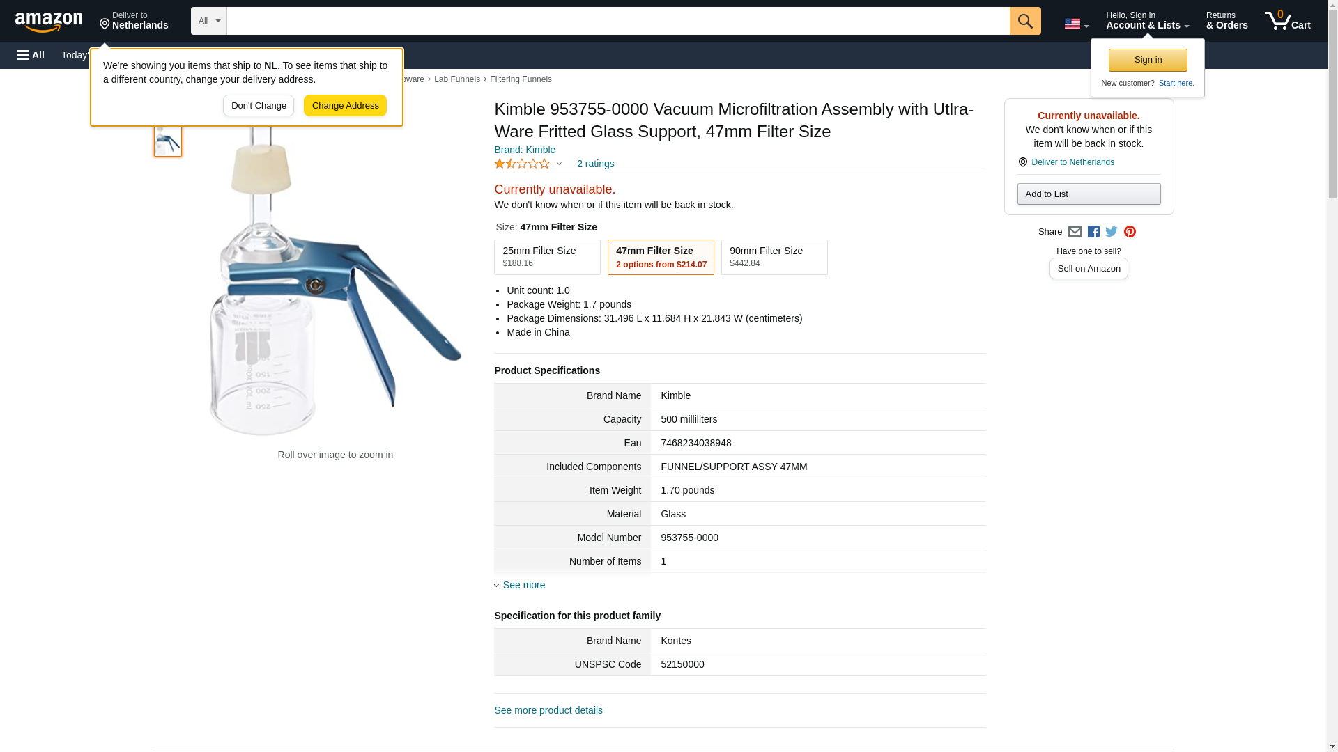 | Feature | KIMBLE - Funnel/Support Assy 47mm , EA1 |