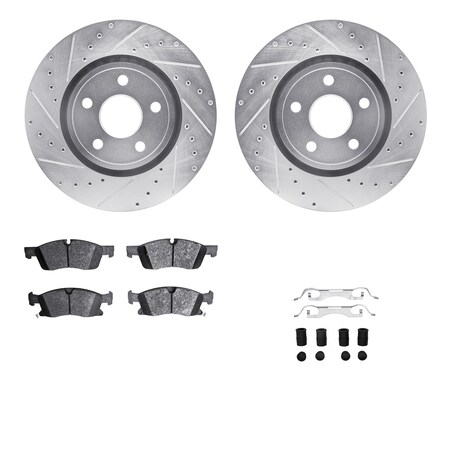 Dynamic Friction Company Front Brake Rotors Drilled and Slotted Silver with 5000 Euro Ceramic Brake Pads includes Hardware - 7612-42003