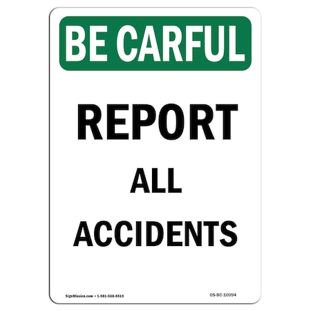 OSHA BE CAREFUL Sign, Report All Accidents, 24in X 18in Decal