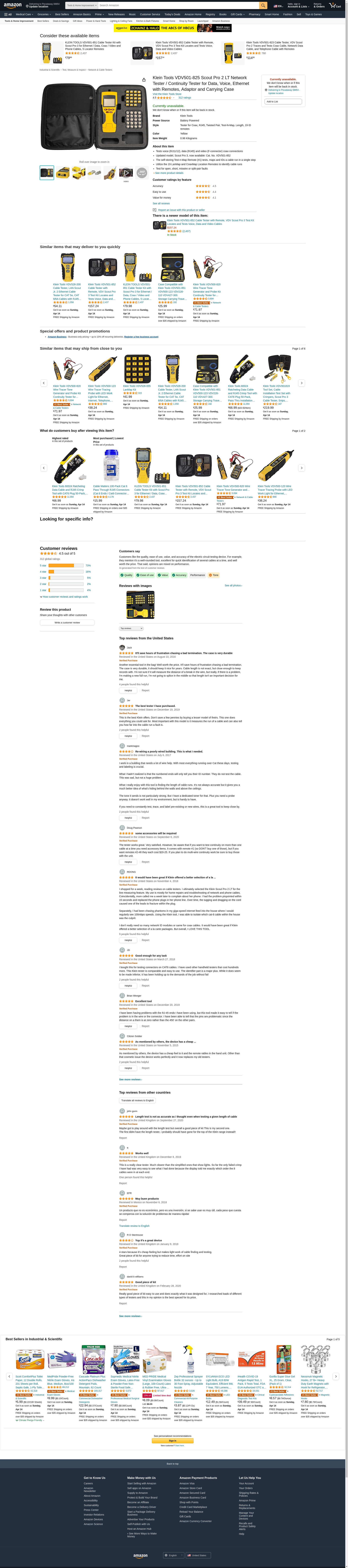 Klein Tools VDV501-825 Scout Pro 2 LT Network Tester / Continuity Tester for Data, Voice, Ethernet with Remotes, Adaptor and Carrying Case