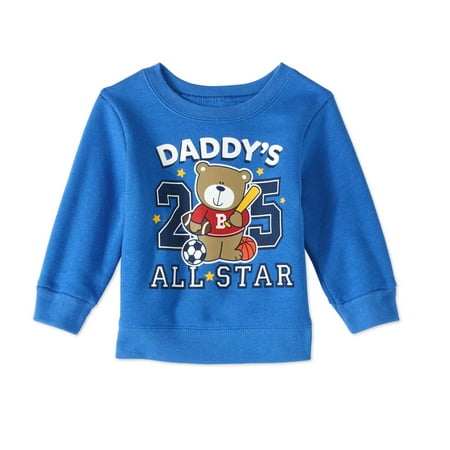 <br /> <b>Garanimals Newborn Baby Boys' Long Sleeve Graphic Fleece Top:</b> <ul> <li>60% cotton, 40% polyester </li> <li>Boys' top </li> <li>Crewneck </li> <li>Front graphic </li> <li>Long Sleeve </li> <li>Ribbed neck, cuffs and waistband </li> <li>Overstitched neck, shoulders and armholes </li> <li>Straight hem </li> <li>Tagless </li> <li>Available in assorted styles </li> <li>Wash inside out, machine wash cold with like colors, gentle cycle, only non-chlorine bleach when needed, tumble dry low, medium iron when needed </li> </ul>