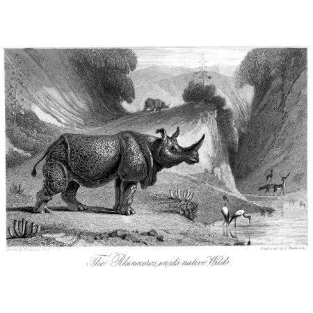 Rhinoceros NThe Rhinoceros In Its Native Wilds Steel Engraving English 19Th Century Poster Print by Granger Collection