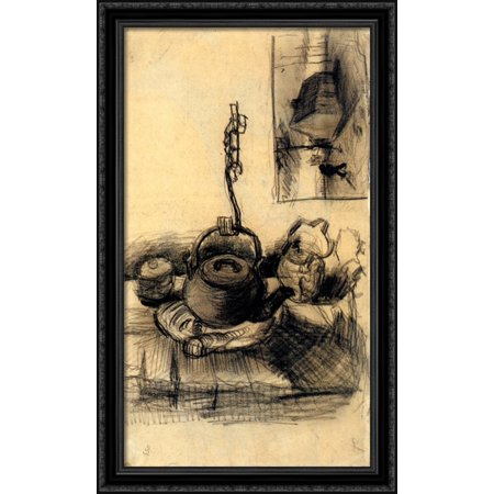 Kettle Over a Fire, and a Cottage by Night 24x40 Large Black Ornate Wood Framed Canvas Art by Vincent van Gogh