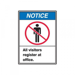 NOTICE ALL VISITORS REGISTER AT OFFICE (W/GRAPHIC) 10" x 7" Dura Aluma-Lite Sign