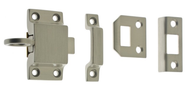 IDH 21006-015 Solid Brass Transom Catch with 3 Strikes Rim, Angle, Universal, Satin Nickel | thebuilderssupply.com