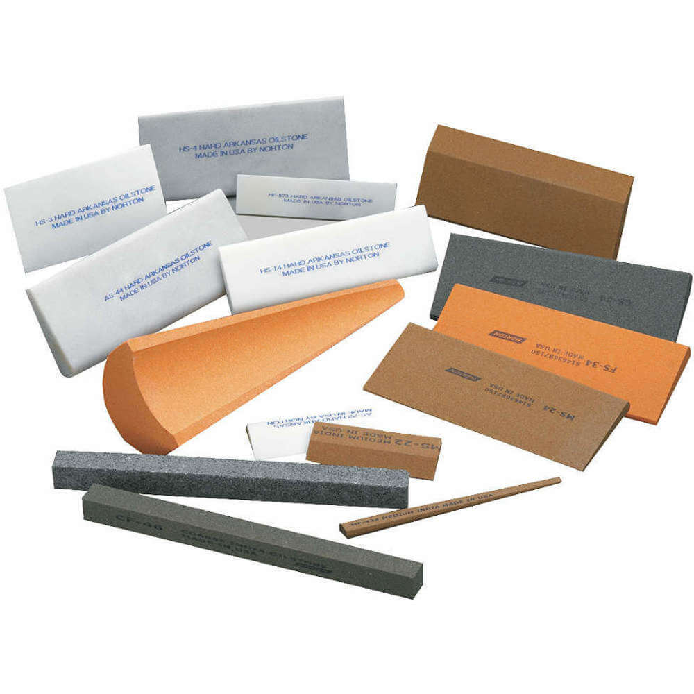 Norton abrasive slips impart the finest, most uniform finish on curved knives and tools, molders' knives, wood gouges, bead planers, carving tools and carbide-tipped tools. These fast-acting slips hold their shape and are long lasting. The Crystolon and India stones are designed for preliminary sharpening and the Norton Hard Translucent Arkansas is the product of choice for achieving the finest finish possible. Package of 5.