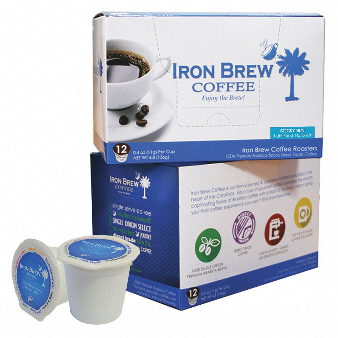 Iron Brew Coffee,Sticky Bun,Caff,Ground,PK12 C-1CT-12SBSS ZO-G6635758 - SIM Supply