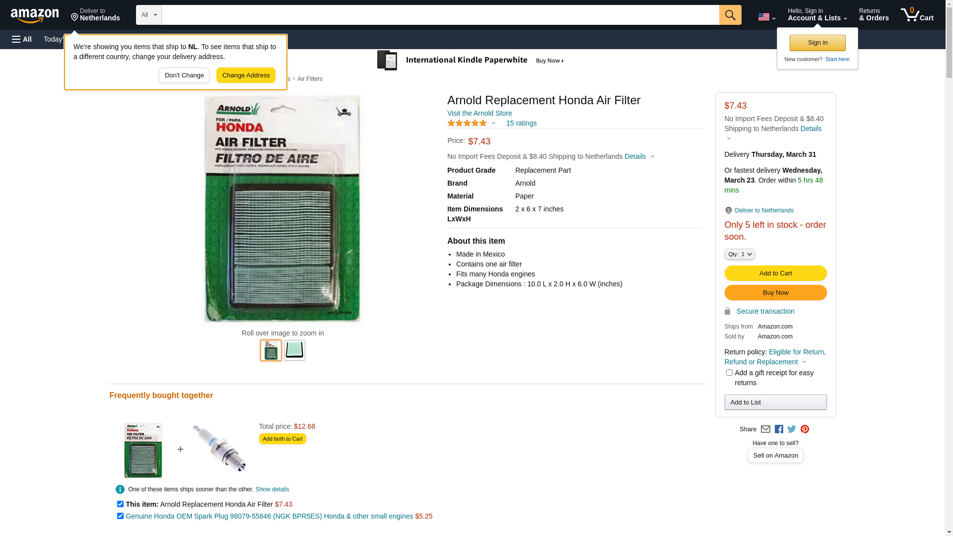 Buy Repl Honda Air Filter | 490-200-0006 | ARNOLD