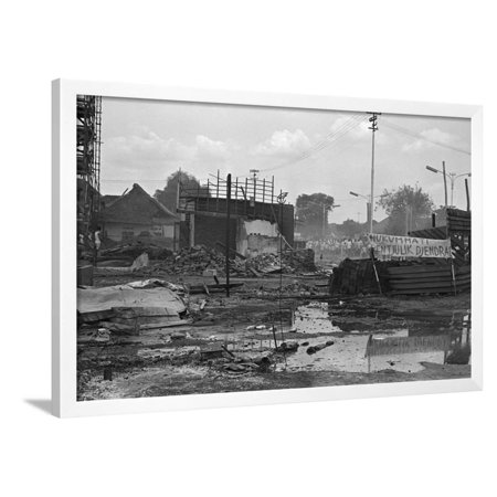<ul> <li>Title: Destroyed Headquarters of Indonesian Communist Party</li> <li>Paper Type: Photographic Print</li> <li>Product Type: Framed Art Print</li> <li>Framed in SOHO White</li> <li>Arrives ready-to-hang for fast, simple installation</li> <li>Framed Size: 38x26 in.</li> <li>Handcrafted in the USA</li> </ul>
