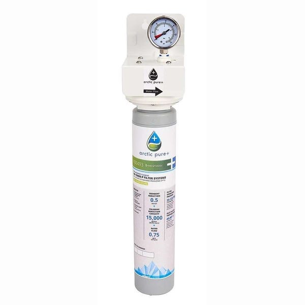 - Ultra-fine filtration (0.5 Microns) with silver impregnated carbon block and slowly soluble polyphosphates provides triple protection from harmful contaminates that can affect your ice machine’s performance.
