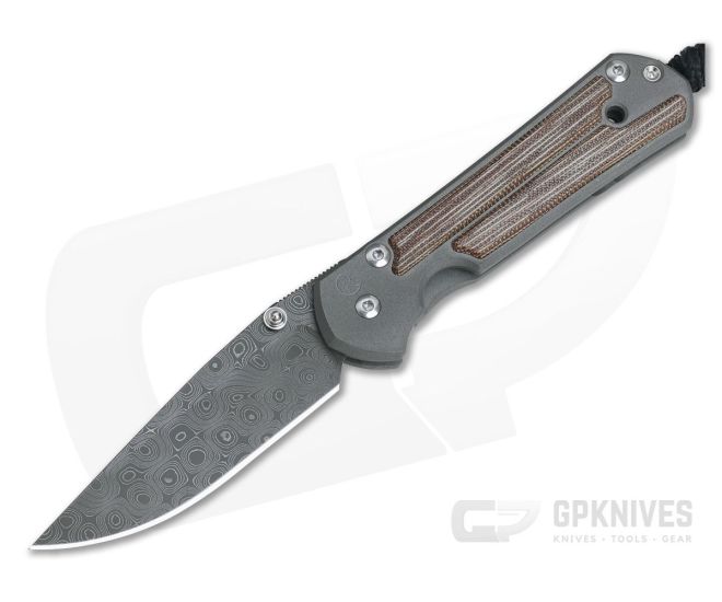 Chris Reeve Small Sebenza 21 Natural Canvas Micarta Raindrop Damascus Drop Point Knife for sale