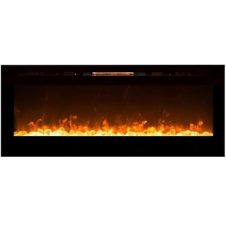 - DESIGNED FOR IN-WALL INSTALLATION: This electric fireplace is specially designed to be recessed into wall mounting. Its black built in frame gives a room a sleek, modern look. The 60-inch fireplace comes with easy-to-follow instructions to help homeowners install the unit on their own. Overall Dimensions: 60W x 5.9D x 21.4H Inches - Flame View Dimensions: 45.3W x 12H Inches - Firebox Dimensions: 46.9W x 20.17H x 5.9D Inches.