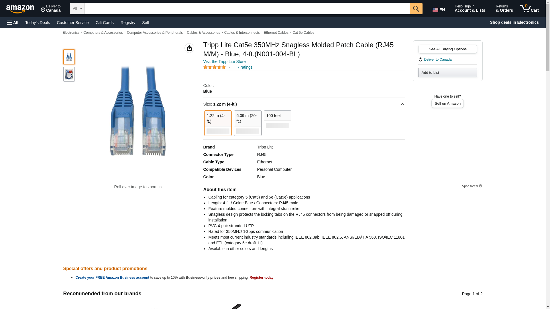 - Length: 4-ft. / Color: Blue / Connectors: RJ45 male