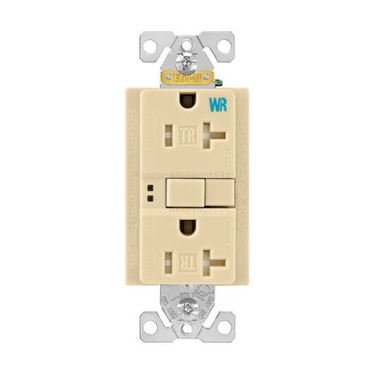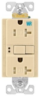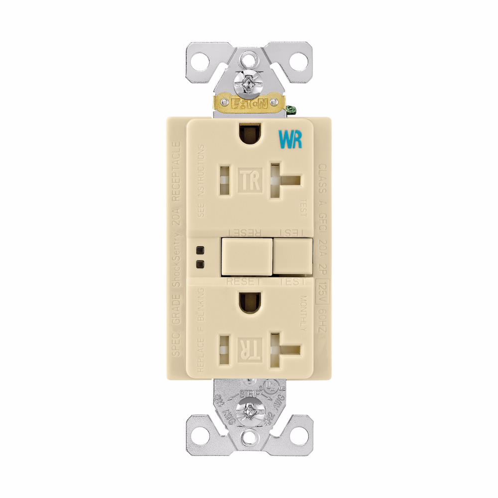 EATON TWRSGF20V Arrow Hart Tamper and Weather Resistant Duplex Gfci Receptacle, 125 Vac, 20 A, 2 Pole, 3 Wire, Ivory