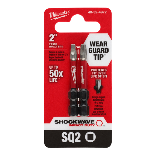 48-32-4972 Milwaukee SHOCKWAVE 2'' Impact Square Recess #2 Power Bits 2PK