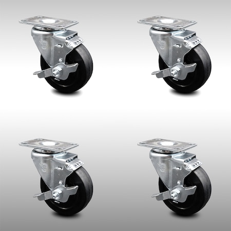 4 Inch SS Soft Rubber Swivel Top Plate Caster Set with Brake