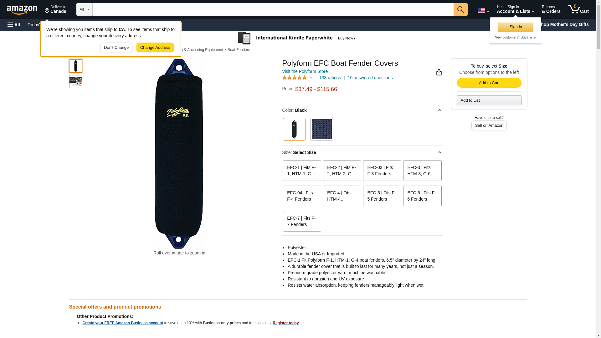 Polyform US EFC-03 Fender Cover, Black (Fits 8.2 x 30-Inch F-3 Fender)