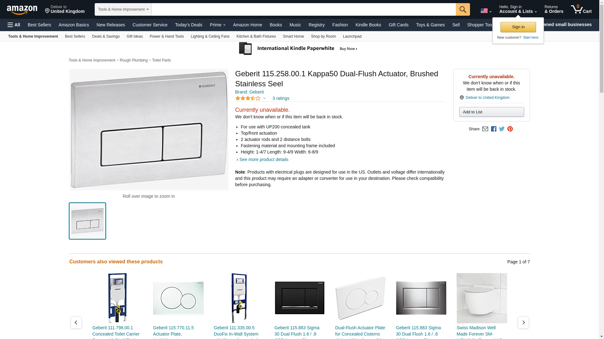 Geberit 115.258.00.1 Kappa50 Dual-Flush Actuator, Brushed Stainless Seel