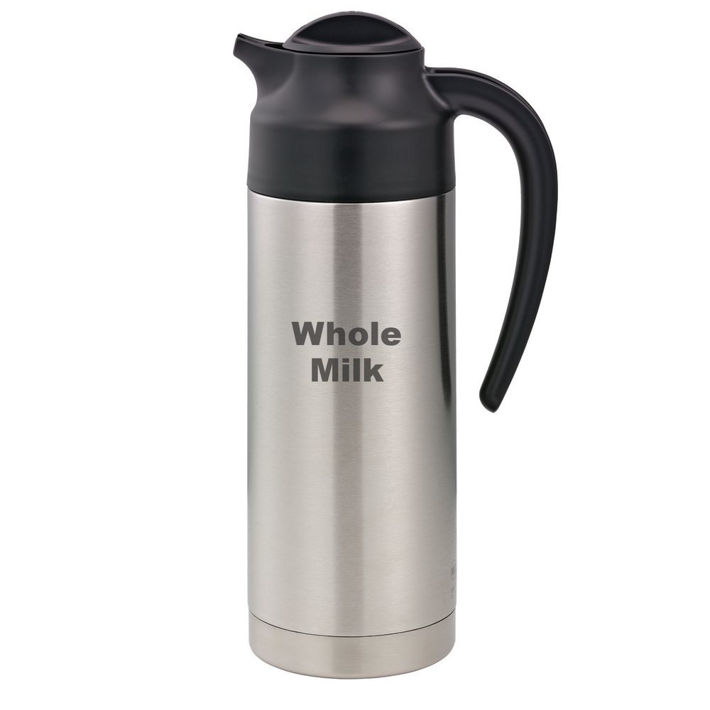 Service Ideas S2SN100WHOLEET Steelvac Carafe, Whole Milk" Etched, 1 L, Stainless Base