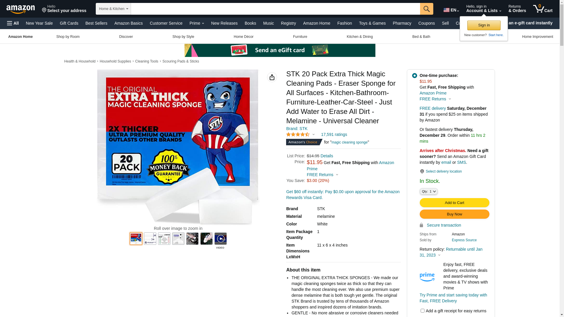 Buy STK 20 Pack Extra Thick Magic Cleaning Pads - Eraser Sponge for All Surfaces - Kitchen-Bathroom-Furniture-Leather-Car-Steel - Just Add Water to Erase All Dirt - Melamine - Universal Cleaner: Sponges - Amazon.com ? FREE DELIVERY possible on eligible purchases