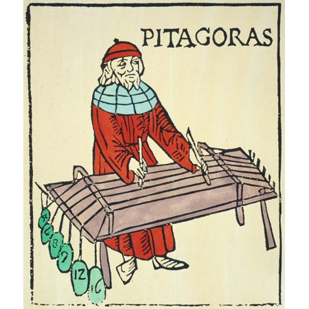 Pythagoras Music 1492 Npythagoras Discovery Of The Dependence Of The Musical Intervals On Certain Arithemtical Ratios Of Lengths Of Strings At The Same Tension Colored Woodcut From Gafurius Theorica M