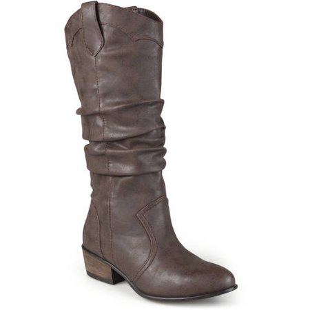 <br /> <b>Brinley Co. Women's Faux Leather Slouch Riding Boots:</b> <ul> <li>Height: mid-calf</li> <li>Style: pull-on</li> <li>Material: PU leather</li> <li>Toe shape: round</li> <li>Heel height/type: 1.8" block</li> <li>Platform height: 0.29" sole</li> <li>Shaft height: 14"</li> <li>Circumference: 15"</li> <li>Width: medium</li> <li>Lining: shaft lined with faux-fur</li> <li>Sole material: TPR</li> <li>Footbed: slightly padded</li> <li>Upper/outsole material: PU leather, TPR</li> <li>All measurements are approximate and were taken using a size 7</li> <li>Please note measurements may vary slightly by size</li> </ul>