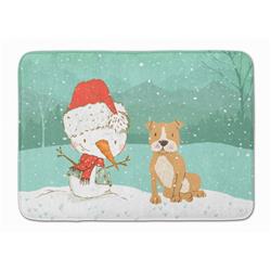 Carolines Treasures CK2076RUG Brown Staffie Snowman Christmas Machine Washable Memory Foam Mat