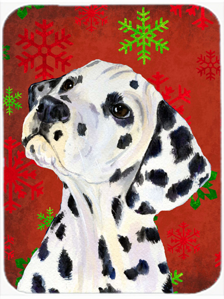 Carolines Treasures SS4699LCB Dalmatian Red and Green Snowflakes Holiday Christmas, Glass Cutting Board - Large
