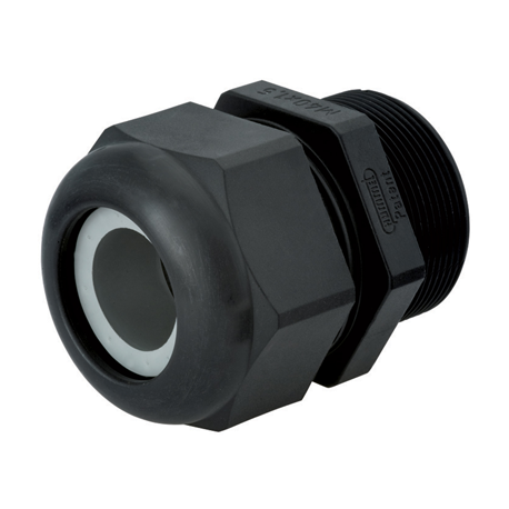 Connects cable or wire to various applications. This strain relief fitting offers a NEMA 4x & 6 (IP 68 & 69K), 150 PSIG (10 bar) Liquid Tight Rating. Also referred to as Hummel 1.209.1201.71. Has CSA approval and is RoHS compliant. The dome withstands vibration and the material is resistant to many substances.
