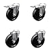 Stainless Steel Soft Rubber Swivel Bolt Hole Caster Set of 4 w/5" x 1.25" Black Wheels - Includes 2 with Total Locking Brakes - 1100 lbs Total Capacity - Service Caster Brand
