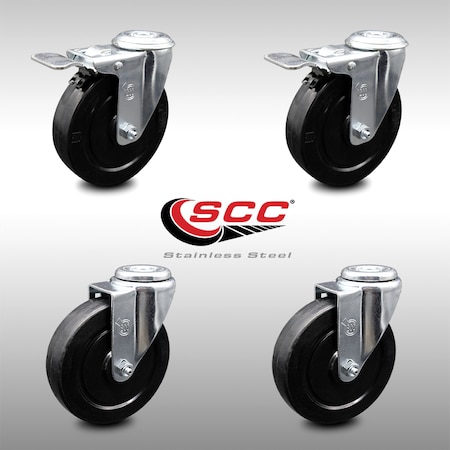 5 Inch SS Soft Rubber Swivel Bolt Hole Caster Set with 2 Total Lock Brake SCC