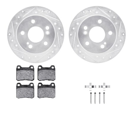 7512-63026, Rotors-Drilled and Slotted-Silver w/ 5000 Advanced Brake Pads incl. Hardware, Zinc Coat