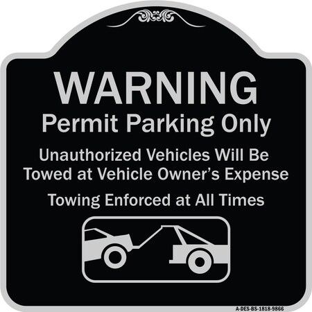 Designer Series-Warning Permit Parking Only Vehicles Will Be Towed At Vehicle