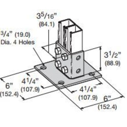 B281SQHDG POST BASE FOR 1 5/8-IN. X 1 5/8-IN. SIDE BY SIDE CHANNEL, 6-IN. X 6-IN. X from EATON B-LINE