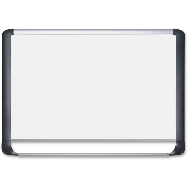 For the most discerning customers, this magnetic porcelain Platinum Pure WhiteTM dry erase board fits the bill. The surface resists ghosting and scratching and is suitable for extensive use. Sleek, contemporary frame design combines aluminum and black plastic for a sturdy yet stunning effect that brings this dry erase board well into the 21st century. Full length aluminum tray and mounting hardware included.