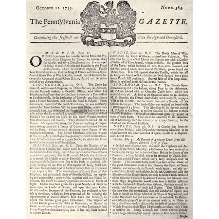 Pennsylvania Gazette 1739 Nfront Page Of Benjamin FranklinS Newspaper The Pennsylvania Gazette 11 October 1739 With Articles From Spain Stockholm And Naples Poster Print by (18 x 24)
